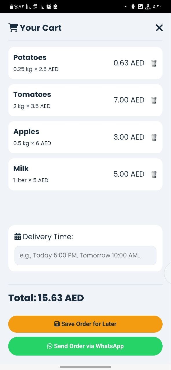 Stop losing customers to competitors! Give your grocery store a professional mobile app where customers can order vegetables, fruits, dairy, and bakery items by weight or quantity – all sent directly to your WhatsApp.