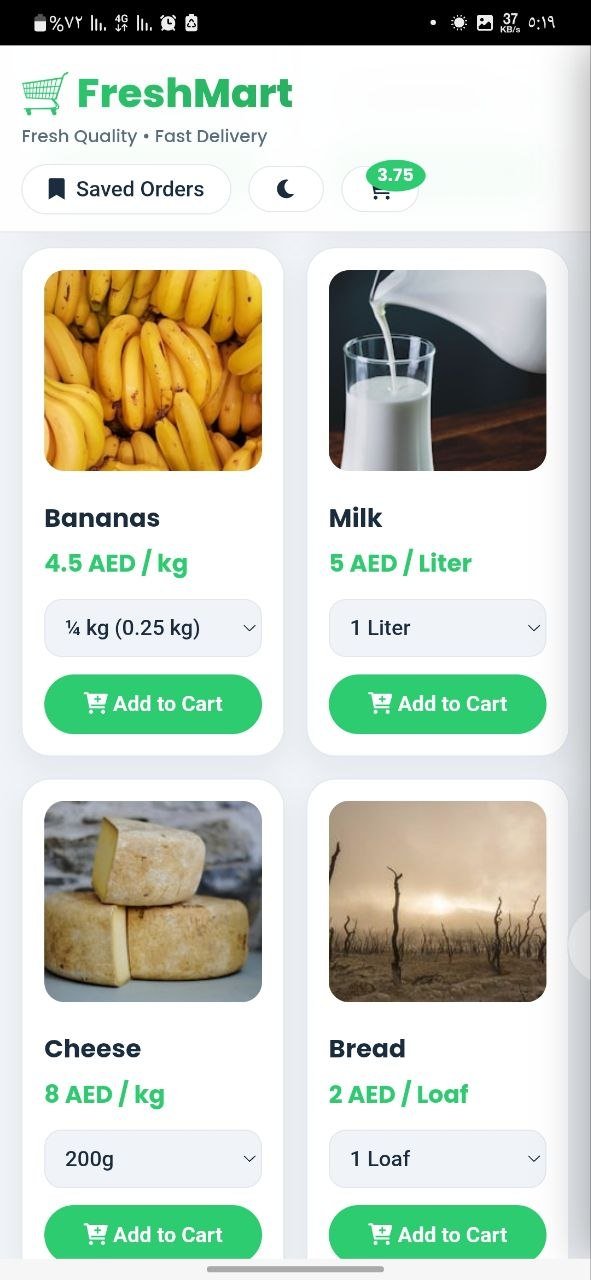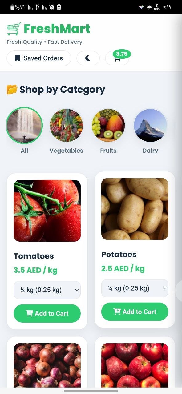 - ✅ Product categories with real images (Vegetables, Fruits, Dairy, Bakery)
